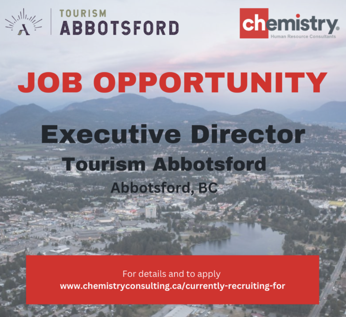 Chemistry Consulting Group has been retained by Tourism Abbotsford Society to assist in searching for an Executive Director to lead their growing organization.
