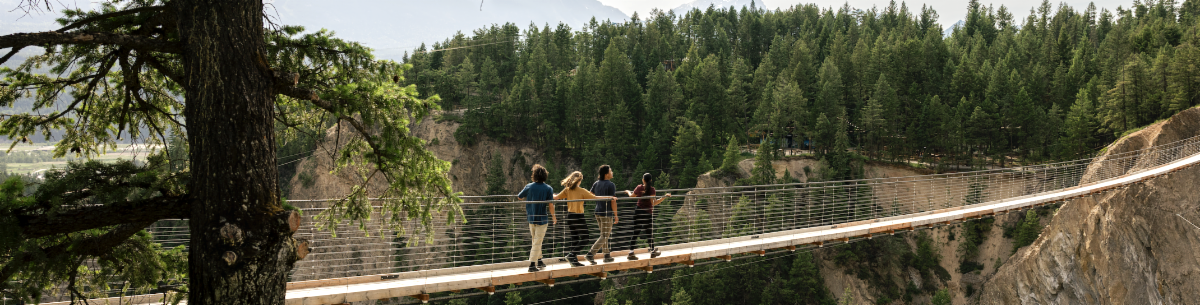 Adventure awaits at Golden Skybridge, home to Canada's highest suspension bridges. As you walk 426ft above an expansive canyon, engulfed by the Columbia Valley, the epic views of the Rocky and Purcell mountain ranges will take your breath away. Beyond the incredible skybridges, there's plenty more to see and do. Take a thrilling ride through the forest, along the canyon edge and down the mountainside aboard the Railrider Mountain Coaster, soar through the sky on the zipline, climb towards the clouds on the rock wall or try you hand at axe throwing.