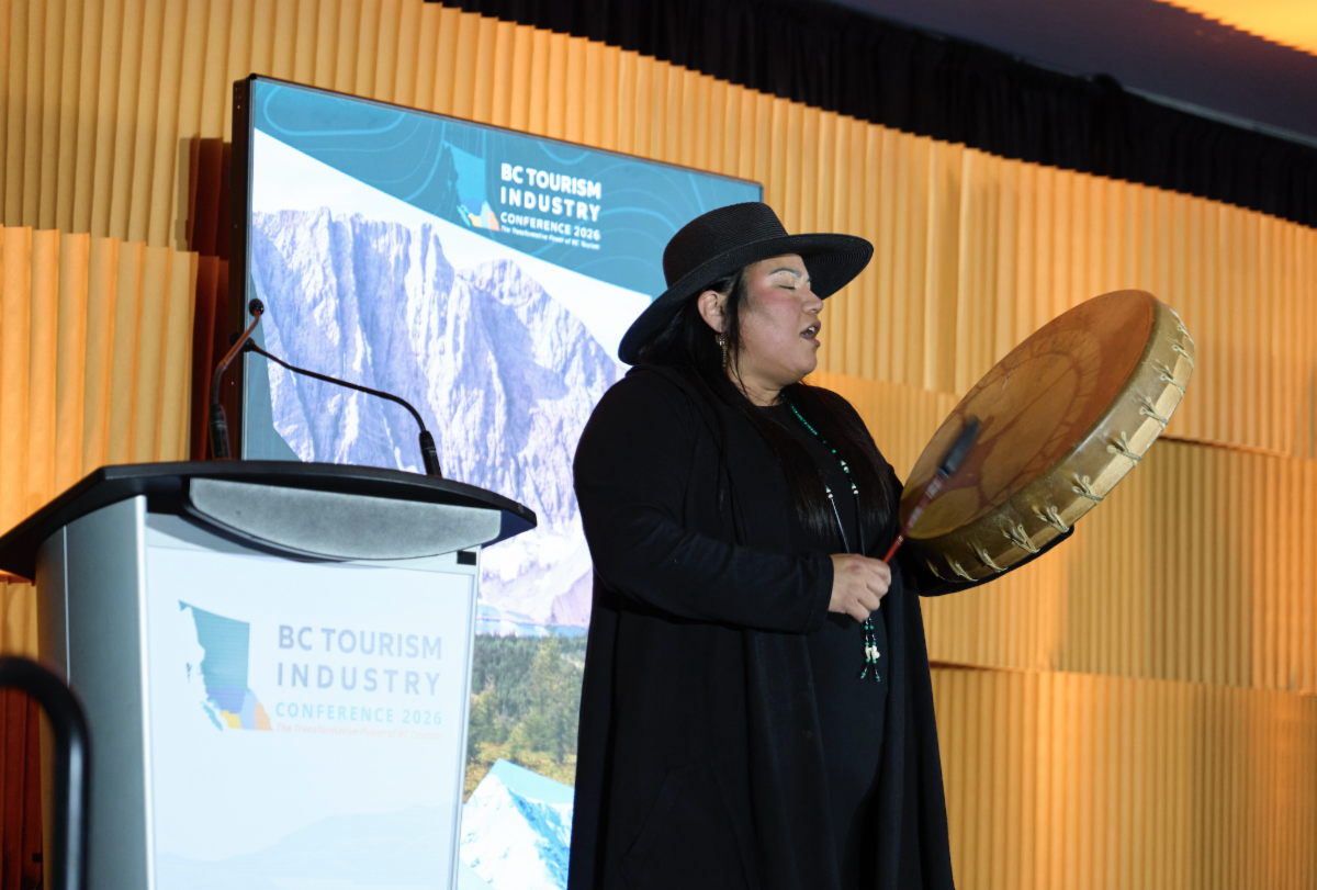 Krystal Withakay (spaxwawlm) opened the 2026 BC Tourism Industry Conference with an Indigenous Blessing. Residing in Westbank, Krystal is of the syilx nation. She is an independent syilx artist and apprentice knowledge keeper.