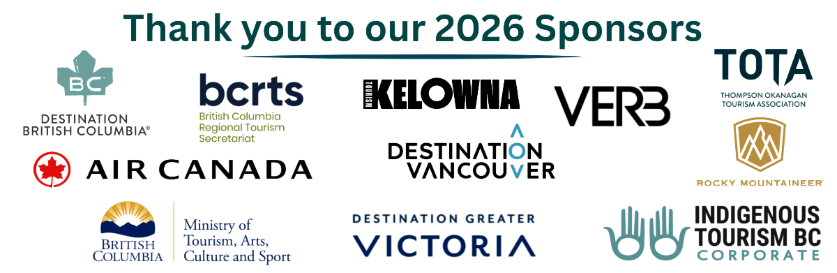 On behalf of TIABC and the 2026 BC Tourism Industry Conference Planning Committee, thank you to our Presenting Sponsor - Destination BC, Host Destination Sponsor - Tourism Kelowna, Platinum Sponsor - Indigenous Tourism BC, Diamond Sponsors - Air Canada and Destination Vancouver, and Gold Sponsors - VERB Interactive, Ministry of Tourism, Arts, Culture & Sport, BC Regional Tourism Secretariat (BCRTS), Rocky Mountaineer and the Thompson Okanagan Tourism Association (TOTA).