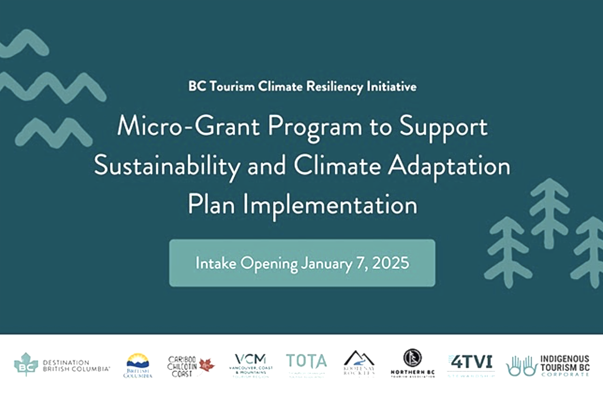 The BC Tourism Climate Resiliency Initiative Micro-Grant Program has returned and the updated program guidelines are now available on Destination BC 'swebsite to help you get ready for the application window January 7-28.