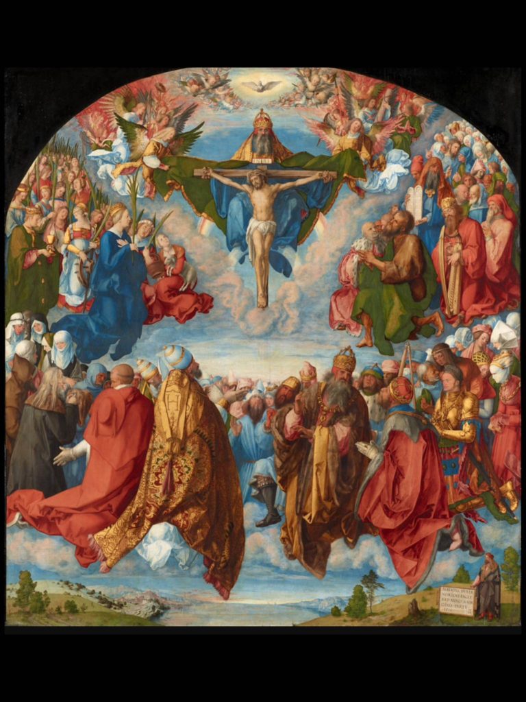 In his oil painting, “Adoration of the Holy Trinity,” Albrecht Dürer gives you, the viewer, the opportunity to see a dazzling vision of Heaven with your very own eyes as it is happening at this very moment….
