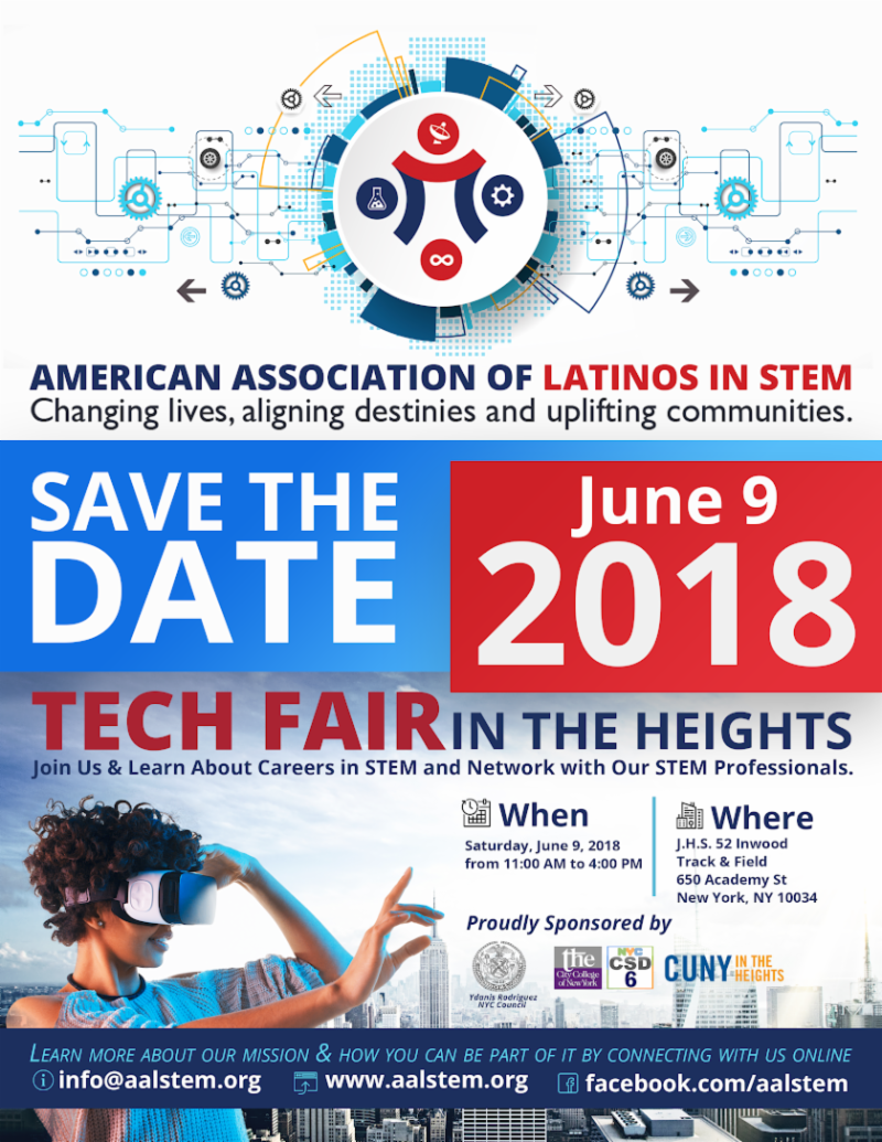 The event counts with the support of Council Member Ydanis Rodriguez, School District 6, CUNY City College and various private and academic sponsors, including Con Edison, Control Electro-Polishing Corporation, Google, LEGO, NY Port Authority, ATAX, Santis Web, DURO UAS, NOAA CREST Research Center, Anyworld Virtual Reality Corp, Zahn Innovation Center, TEQ, and NYU.