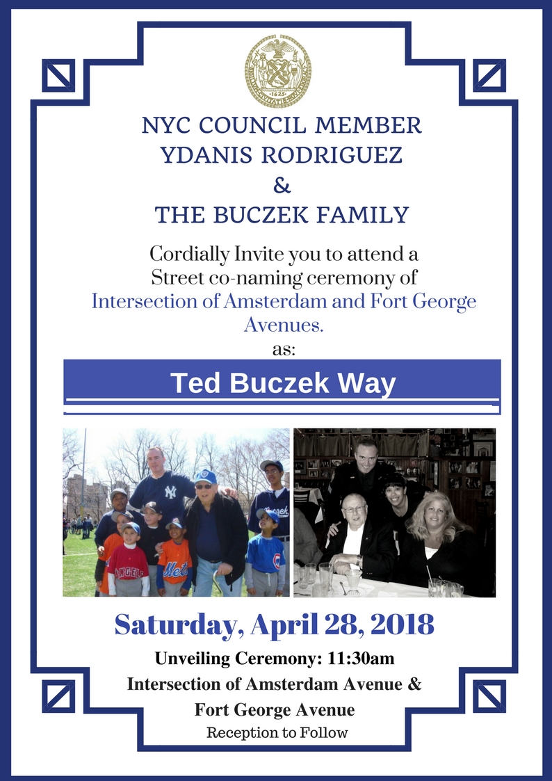 "TED BUCZEK way" TO HONOR & CELEBRATE HIS LIFE & CONTRIBUTION TO NEW YORK CITY AND THE NORTHERN MANHATTAN COMMUNITY