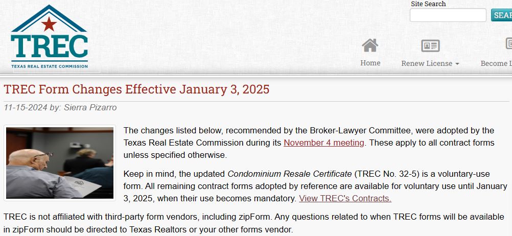 Starting January 3, 2025, the new TREC forms will go into effect. If you haven’t had the chance to review these updates yet, below is a quick link to the TREC site where you can find the redline changes to the forms and familiarize yourself with the updates.