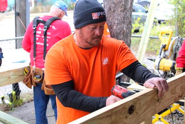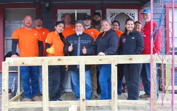 A dozen volunteers from Home Depot’s Bitters Store and Flatbed Distribution led by Brandi Marquez turned out on build day, tearing down the old, dilapidated ramp and building a new 39-foot ramp in its place. This is the sixth ramp that Home Depot teams have helped build and covered the materials cost. After the build, Home Depot thanked Mr. Sarabia for his service and presented him with a new American flag that he proudly mounted on his front porch.