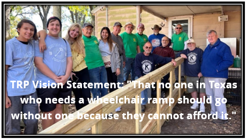 Planning continues for 40th anniversary celebrations across the state. The Texas Ramp Project was started back in 1985 when several members of the Richardson Kiwanis Club built a few ramps for friends with disabilities. These first ramps turned into a major program in the Dallas area, which in 2006 was extended statewide and incorporated as the Texas Ramp Project. John Laine was TRP founder and long-time executive director.