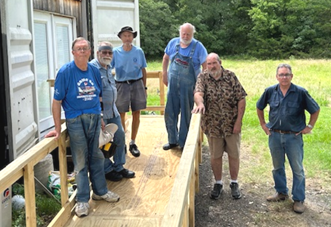 The Greenville Golden K Kiwanis team of Hunt County has built the first ramp designed specifically for a client who lives in a converted shipping container. It was a unique experience. Team leader Will Reese and his volunteers had to adjust their building plans to accommodate several obstacles. The 79-year old client, Ms. Rebecca E. of Royce City, was referred by Baylor Scott and White. This new 24-foot ramp will make coming and going from her home so much easier.