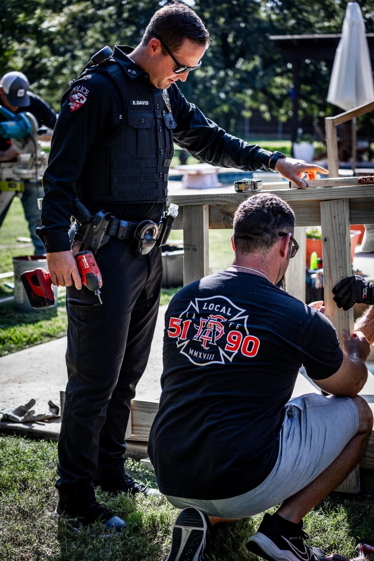 Because of his injuries, Caleb needed a ramp at his home, which had a threshold and one small step. A 6-foot ramp was quickly installed by a group of Denton and Fort Worth firefighters after a referral came from Denton County Emergency Services. Denton County coordinator Ron Anderson set up the build, and Conan Tierney led the team.