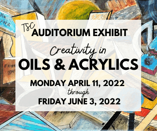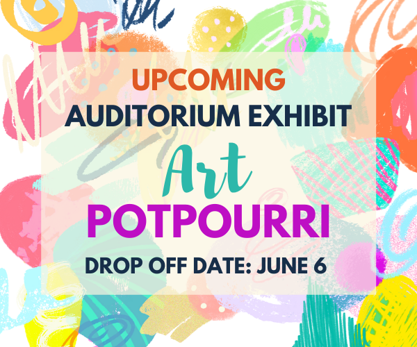 Art Potpourri is an exhibition of drawings (graphite, color pencil, charcoal, pen & ink), pastels, Zentangle, collage, clay, mixed media etc,. Current (within the last year) TSC Art Participants, students and teachers can display up to two artworks. Deliver Monday morning, June 6, to the second floor auditorium, between 9:00-10:00am or bring the week before and store in the Arts Program Coordinators Office.