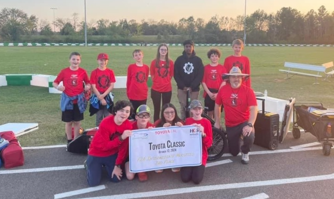 The Hampton Cove Middle School Greenpower Team and their school sponsor, Ms. Melissa Snider, have many words to describe their love for Greenpower. Ms. Snider states that many of her students join Greenpower because of their hopes to drive the car they build, but many of them stay because they fall in love with every aspect of Greenpower.