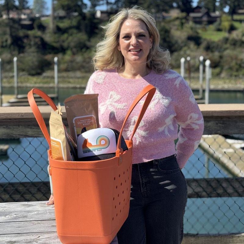 In addition to a two-night stay at The Wildflower Inn in Gold Beach, she received a beach bag full of Kissing Rock Coffee merchandise and South Coast Roast coffee, plus adventure gear and a two night stay at Gold Beach's stylish The Wildflower Inn.