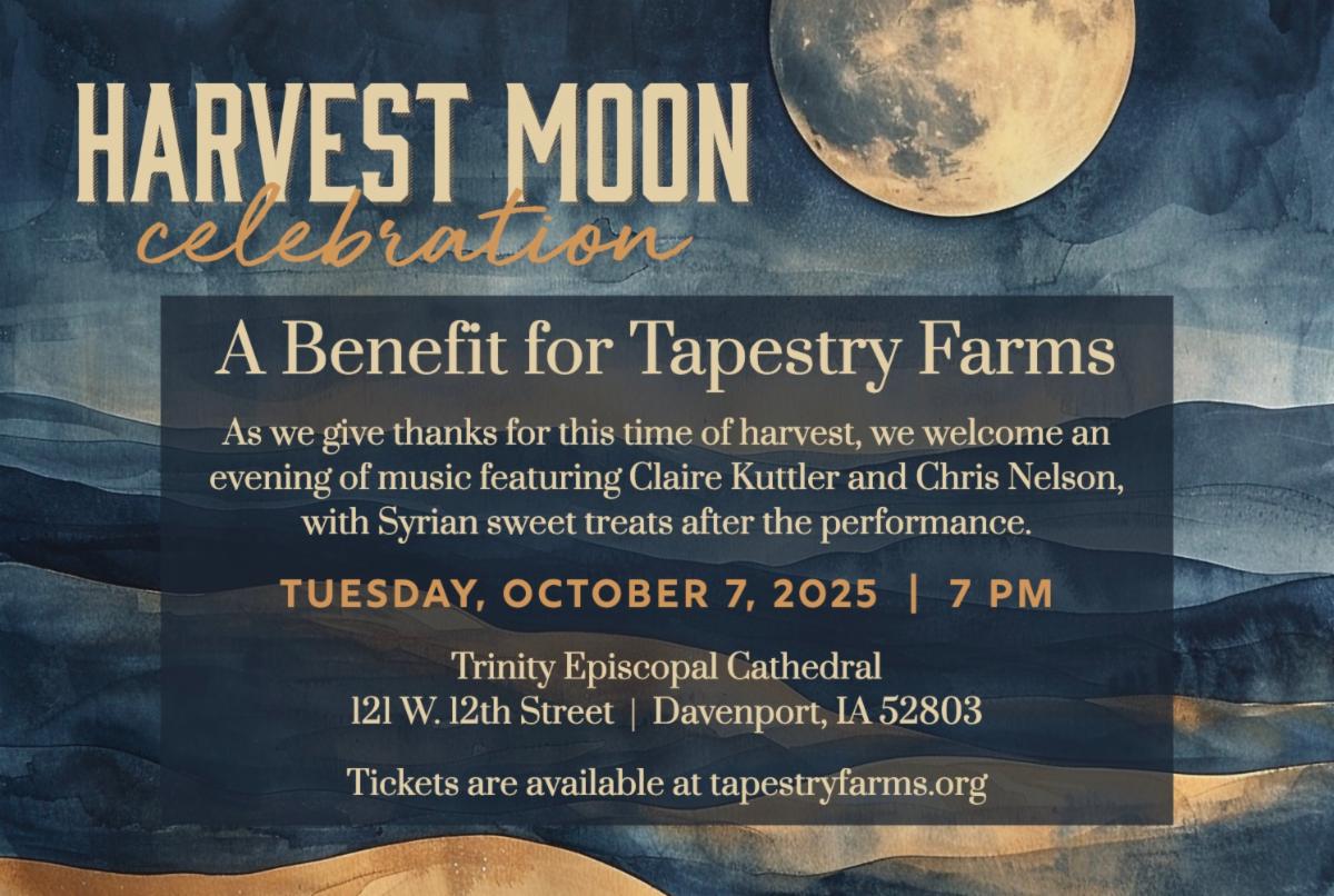 Tapestry Farm’s is hosting their first ever Harvest Moon Festival fundraiser on October 7th at 7 pm in the Great Hall. Tickets available below by clicking the link.