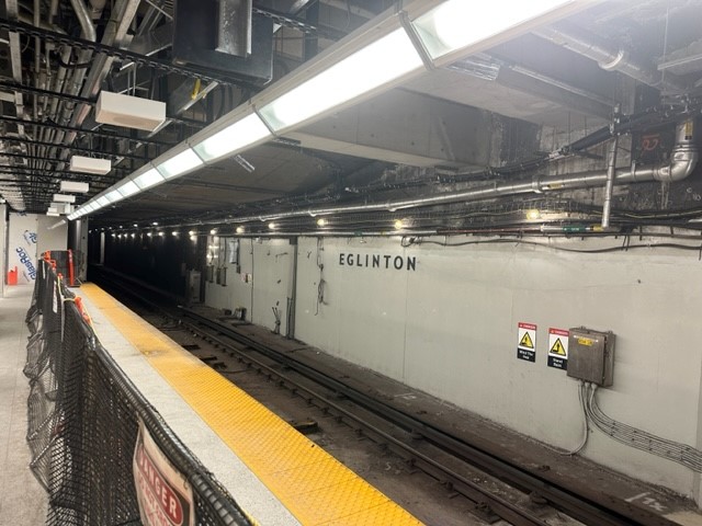This extension connects customers to the future Line 5 Eglinton Station. Construction teams are working on the new escalator and elevator that will take you to the Line 5 platform, so customers might notice hoarding in some areas. If customers enter the platform at the south end of the station, there will be fencing along the platform’s edge. This is due to the train stopping further up the station, so customers will need to travel a short distance to board the train. To view the video of the extended platform, please visit our Instagram.