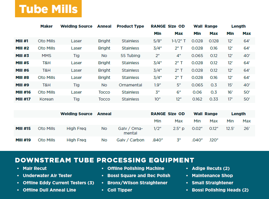 INCLUDING BUILDING & TUBE PROCESSING EQUIPMENT