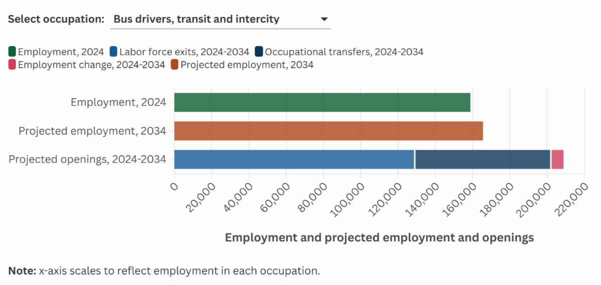 | | | Operator Hiring Practices Project | | Apprenticeship and Mentorship | | Veterans in Transit: Stories, Case Studies, and Upcoming Webinar | | With Veterans Day approaching next week, TWC is publishing its newest Transit Career Story, Continuing to Serve — Veterans’ Transit Career Routes, featuring five veterans from across the country who have devoted themselves to careers in the industry. Each offers their perspectives and reflects on both unique and shared experiences that connect their routes from military service to transit. | | Five veterans share military-to-transit transferable skills | | Veterans Webinar Tomorrow! | | Key Updates to the Transit Workforce Data Dashboard | | Employment projections for 2024-2034 are now live on the Transit Workforce Data Dashboard. Explore this data to see where transportation occupations are going in the next 10 years. TWC has also added two new Dashboard charts on workforce characteristics, based on data from the Current Population Survey and iPUMS. One chart shows the percentage of military veterans in transit-related occupations, and the other shows the percentage of workers in transit-related occupations who are parents and caregivers of minor children. These charts help to provide the industry with a better understanding of who comprises today’s transit workforce. | | Announcing New Project on Streamlining Operator Hiring Practices | |