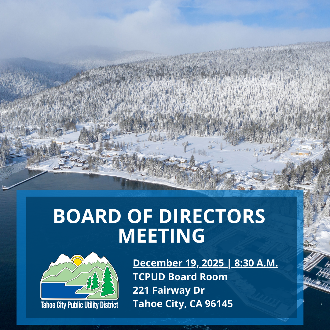 The TCPUD Board of Directors will hold their next regular meeting on Friday, December 19 at 8:30 a.m.