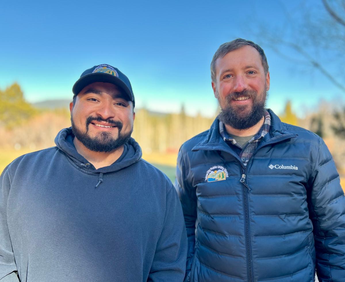 | | Mauricio Perez, Utilities Operations Specialist II (left) and Aaron Hussmann, Public Affairs Specialist (right). | | |