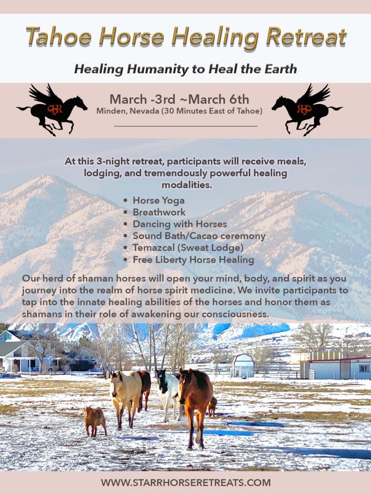 Starr Horse Retreats is offering a 3-night Shamanic Horse Healing Retreat, 30-minutes east of Lake Tahoe in the verdant Carson Valley.