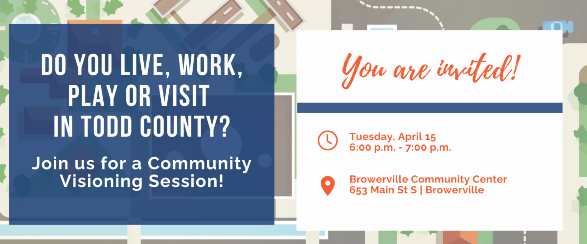 Join us at the Community Visioning Session on April 15 at 6:00 PM at the Browerville Community Center!