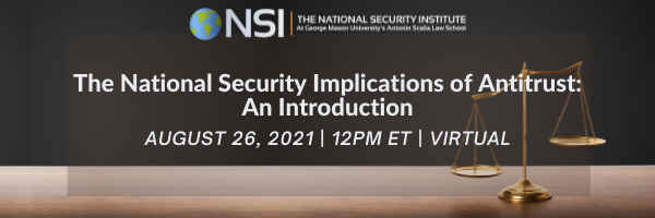 Tomorrow, the National Security Institute at George Mason University's Antonin Scalia Law School will host the first event in their four-part series, the Tech Innovation and American National Security project, which will examine the national security implications of antitrust challenges at home and abroad. The virtual panel will provide an introduction to domestic and international antitrust laws and examine the role of the U.S. tech industry in promoting U.S. national security and economic interests, including providing historical frameworks leading up to the current call by U.S. lawmakers to introduce antitrust lawsuits to protect consumers here in the United States.