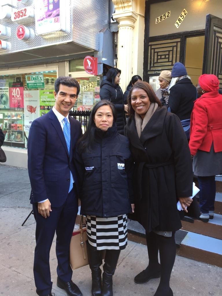 This morning, on her first day on the job, the new HPD Commissioner, Maria Torres-Springer joined tenants from 3852 10th Avenue, as well as myself and Public Advocate Letitia James, to announce new enforcement actions against their slumlord, who has let the buildings deteriorate to a dangerous degree. Following an instance in early January, where tenants were rushed to the hospital from a boiler leaking carbon monoxide, my office and that of Assemblywoman Carmen De La Rosa, have worked with organizers and tenants to ensure the city does everything in its power to see repairs made in this building.
