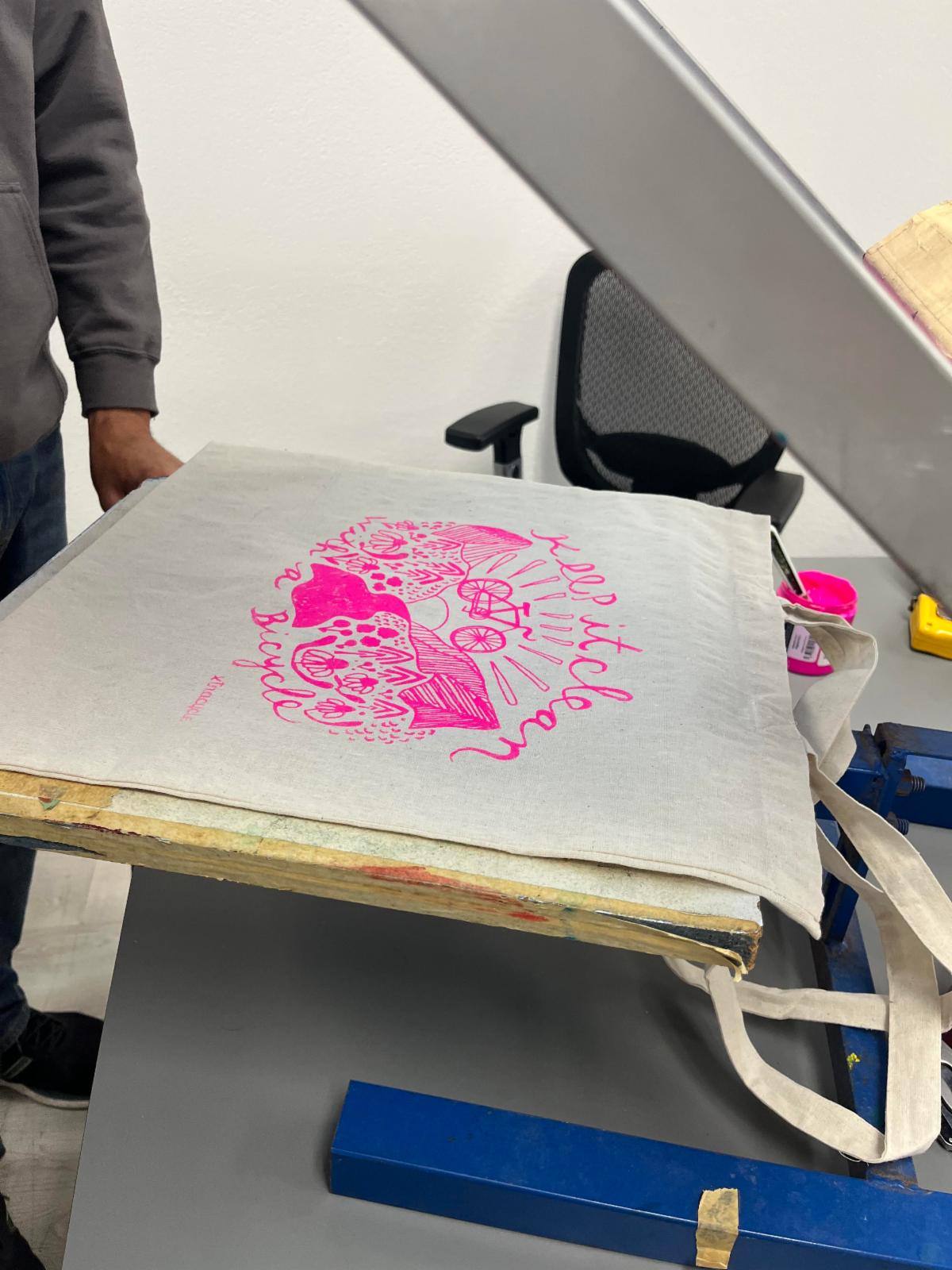 We'll have a new design to print on canvas totes - free while they last! We did a little test run this week at Xtracycle - a HUGE thank you to Jamie and Joe for helping us make this Earth Day a little more custom!