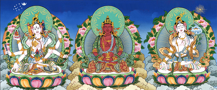 The three main Deities of Long Life (Tse Lha Nam Sum) are Ushnishavijaya, Amitayus and White Tara | |