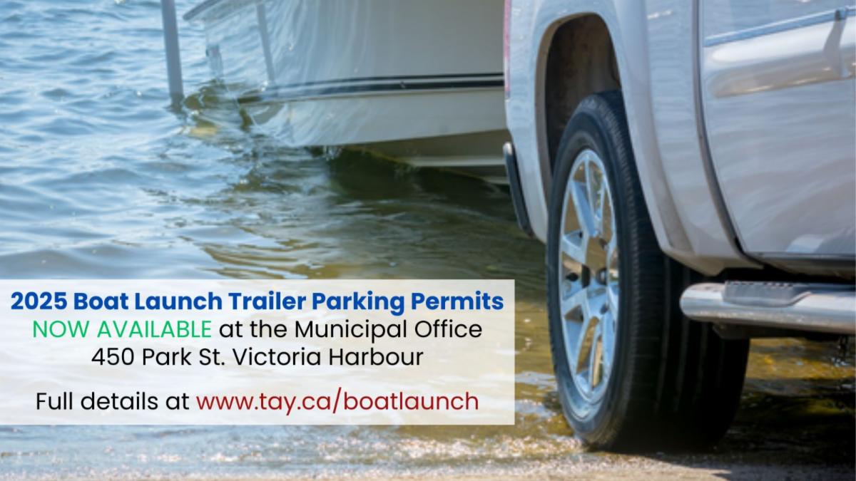 Residents and property owners in Tay Township can obtain their 2025 Albert Street boat launch parking permit. This permit is required to park with a trailer in the designated trailer parking spaces at 110 and 145 Albert Street. Obtain your free permit by visiting the Municipal Office. More details available at tay.ca/BoatLaunch.
