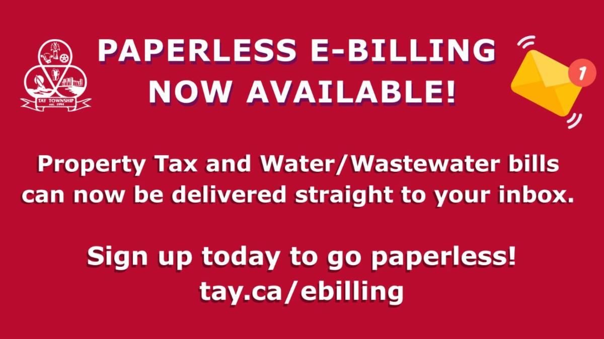 In addition, Tay Township recently launched E-Billing, a convenient, and environmentally friendly way to receive your tax and water/wastewater bill directly to your email. If you choose to enroll, you will no longer receive a paper copy in the mail and notices will be sent directly to your email. Sign up today by completing the online E-Billing Enrollment Form.