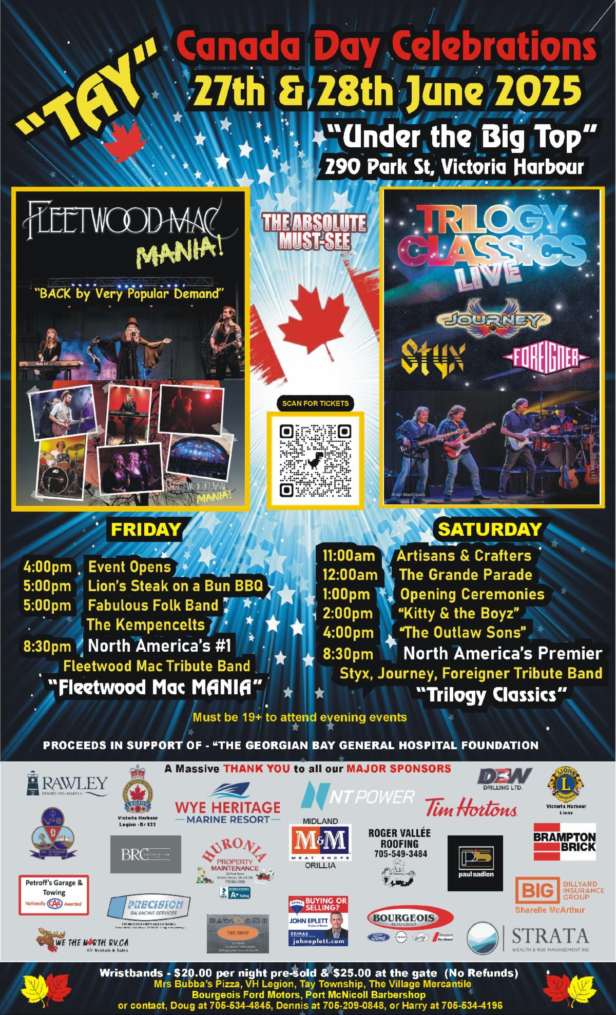 In addition, the Mayor’s Charity Golf Tournament Tee Off With Tay takes place on August 15 at the Midland Golf and Country Club. This event brings our community together to raise funds for our local schools, hospital and mental health services. Sponsorship opportunities are available and are a great way for local businesses and community partners to support these important causes while gaining visibility at this high-profile local event. New this year! Enjoy live music from Kitty and the Boyz under the tent from 6:30 p.m. to 9:30 p.m. Concert tickets and dinner packages are also available for non-golfers. For registration, tickets and sponsorship details visit tay.ca/golf.