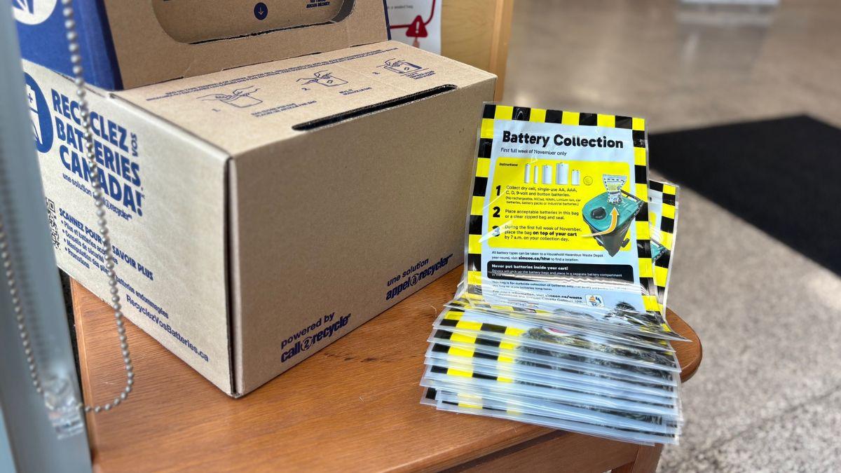 Simcoe County Battery Collection Week runs from November 3 to 6, 2025. Place a sealed battery bag on top of your green cart on your regular collection day.
