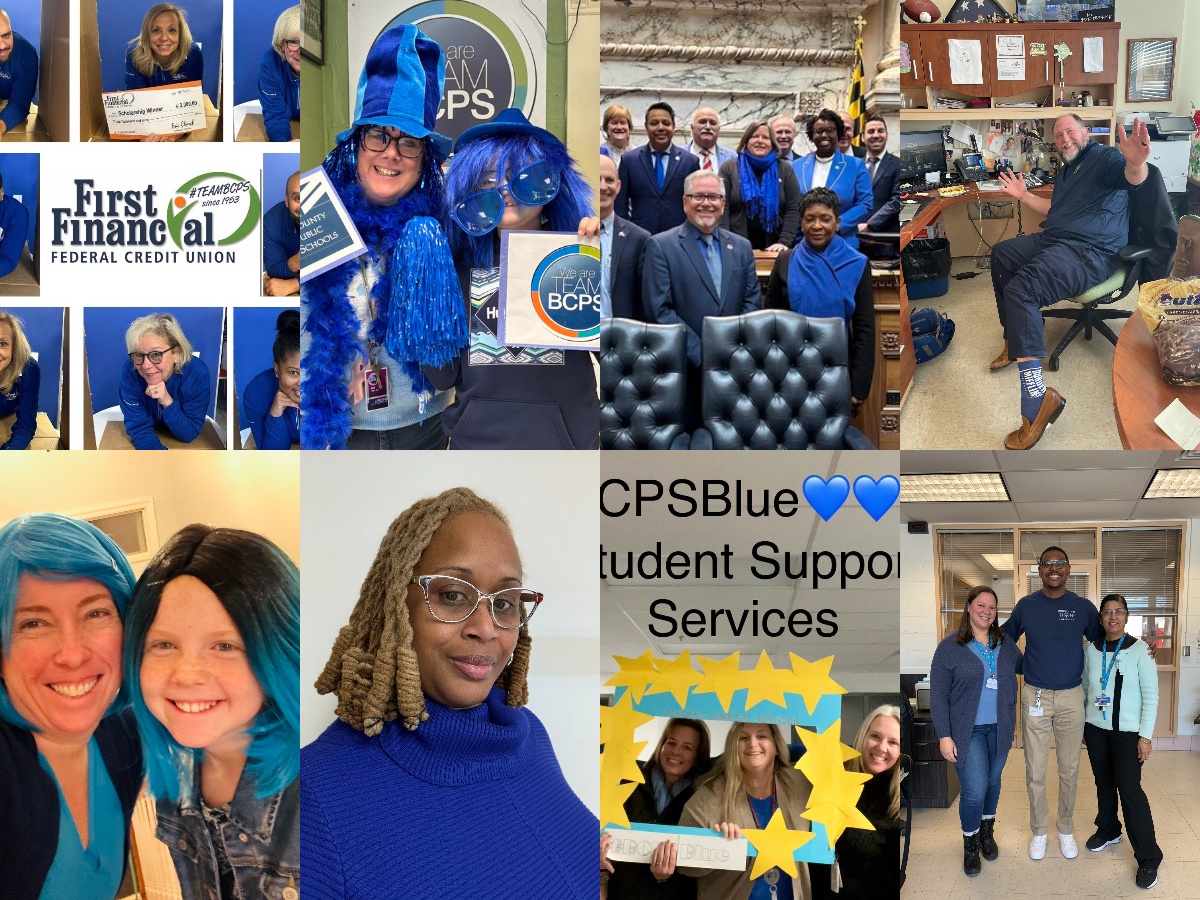 Every year on Team BCPS Day (the second Thursday in January), the entire community is invited to wear blue and post photos on social media using #BCPSBlue. Photos from the celebration are available in a BCPS Flickr album. (Photos are still being accepted. Submit yours by posting photos on social media using #BCPSblue or emailing them to communications@bcps.org.)