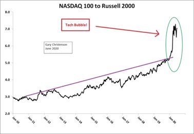 Consider the NASDAQ 100 to Russell 2000 ratio. Yes, the NASDAQ is in a bubble.