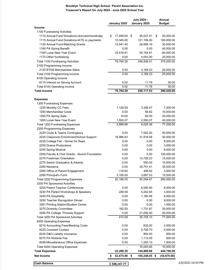 As of January 31, 2025, the Brooklyn Tech Parents Association has spent over $145,000 sponsoring the following initiatives: