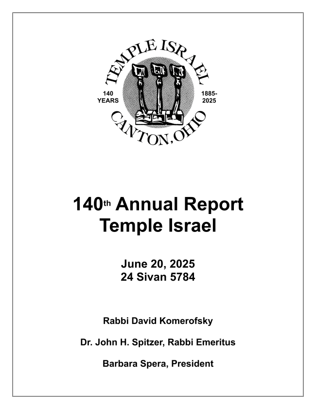 We are a community rooted in history – 140 years strong and also one stepping forward with intention. Our challenges are real but so is our resilience we are guided by our values, supported by one another and committed to creating a sustainable, vibrant future for Temple Israel. I am honored to serve this extraordinary community, and I am filled with hope for what we will continue to build together. I hope to see you at the 141st Annual Meeting.