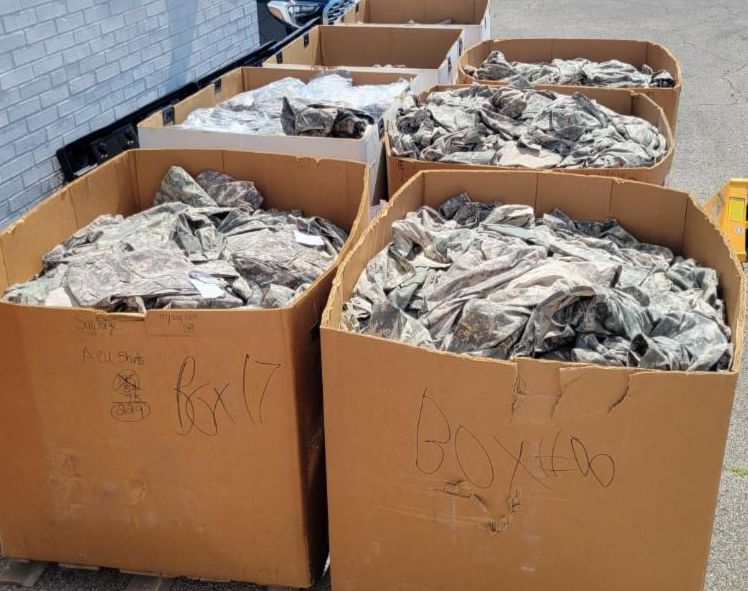 The Mississippi State Guard recently donated more than 2,000 pounds of Army Combat Uniforms (ACU), to the Tennessee State Guard after transitioning to the Operational Camouflage Pattern uniform (OCP).