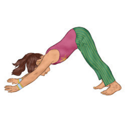 Bend down and place your palms flat on the ground. Step your feet back to create an upside-down V shape with your buttocks high in the air. Straighten your legs, relax your head and neck, and look down between your legs. Think of being an eager and friendly dog.