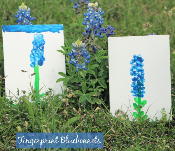 - Paint the petals for the bluebonnets with blue paint on a finger or thumbprint.