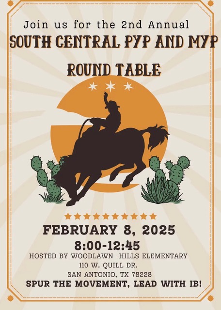 Giddy on up! We invite you to join us in San Antonio at Woodlawn Hills Elementary on Saturday, February 8, 2025 for a South Central Texas PYP and MYP Roundtable. This event is free!