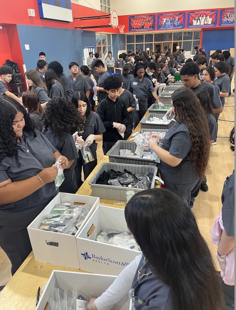 This past October, students from Uplift Heights Healthcare Institute participated in a service project as part of their MYP Individuals & Societies curriculum on humanitarian supply chains. They packed over 1,100 hygiene kits for "Texans On Mission," an organization that sent volunteers and supplies to support victims of Hurricane Milton.