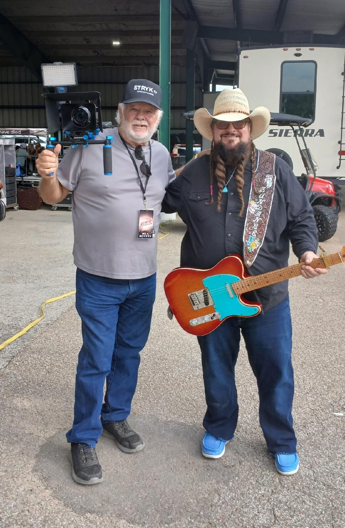 DANCING SUN: Texas Music artist Sundance Head posed for the camera with Tommy Mouser of STRYK TV and Texas Best Country at Sundance Head's recent concert stop.