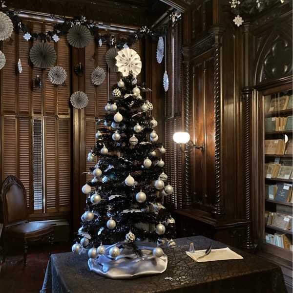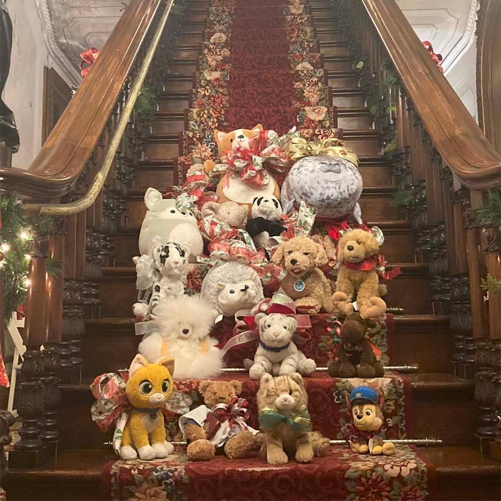 During the holiday season, Victoria Mansion hosts a handful of public events. This year's events included annual favorites Night of the Nutcracker with Portland Ballet, and a Charles Dickens program with actor Andrew Harris - his 2023 performance, for the 180th anniversary of A Christmas Carol, was titled Mr. Dickens and His Carol. We also debuted a new program for our youngest visitors: the Ruffi Stuffie Sleepover! Named for our friendly feline volunteer, Ruffi the Museum Cat, children and their caregivers brought their stuffed animals for a story time (with guest reader and friend of the Mansion Kim Block), then left the stuffed animals for a "sleepover" in the museum, with photos of their activities being shared with their families the next day.