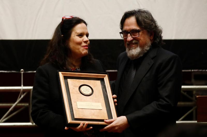 The Chamber's President, Maya Fernández, hands over the prestigious award stating the importance and vital role that artistic expression plays in Chilean society.
