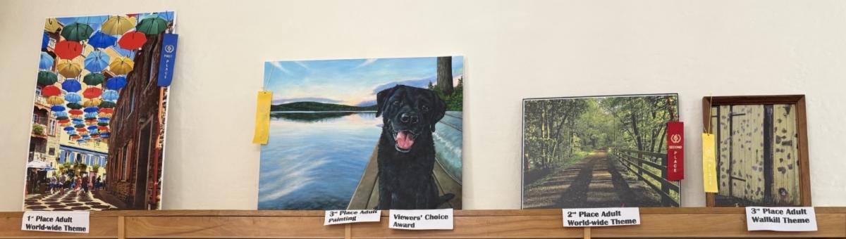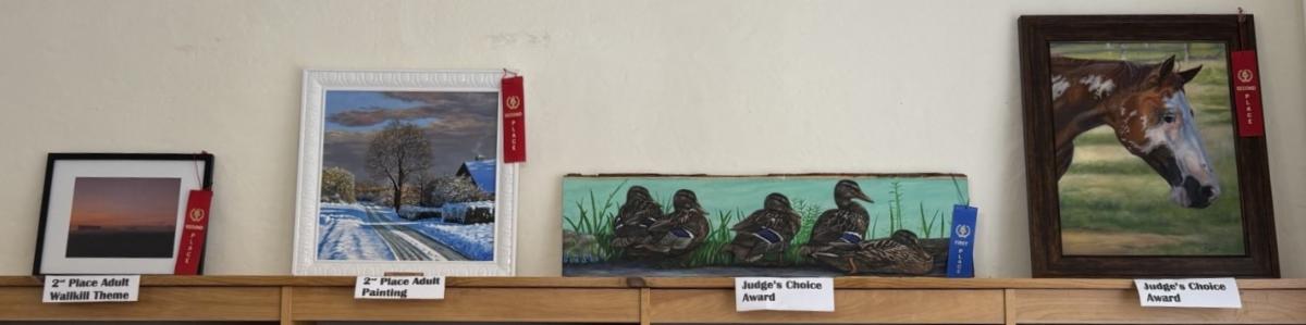 Be sure to look up next time you visit the library. The winners of the Weekend of Wallkill Art Show are on display above the shelves in our main circulation room.
