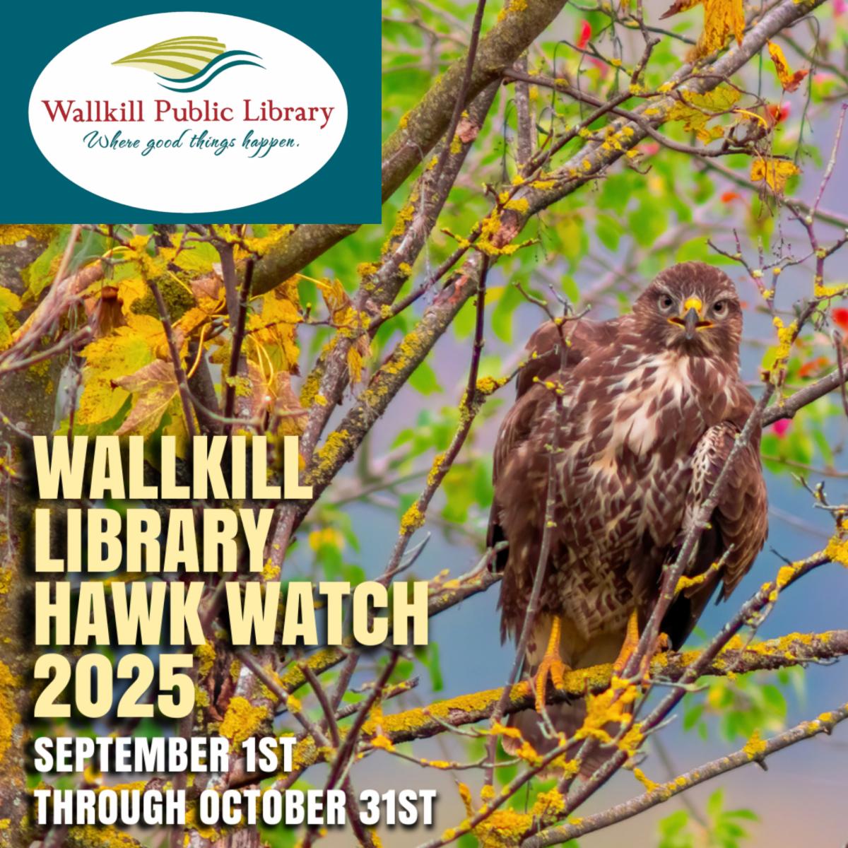 Wallkill Public Library is marking the annual autumn hawk migration by encouraging our patrons to report their hawk sightings! Swing by the library during our regular operating hours now through October 31 to log your raptor sightings in our hawk watch book. We're eager to learn about all of the amazing raptors you'll spot.