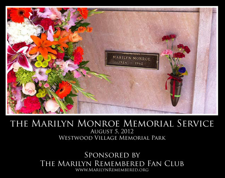 The 50th Anniversary Marilyn Monroe Memorial Service was held on Sunday, August 5, 2012. Hundreds of fans traveled to Los Angeles for a week of events and activities arranged by the Marilyn Remembered Fan Club and by the Immortal Marilyn Fan Club.