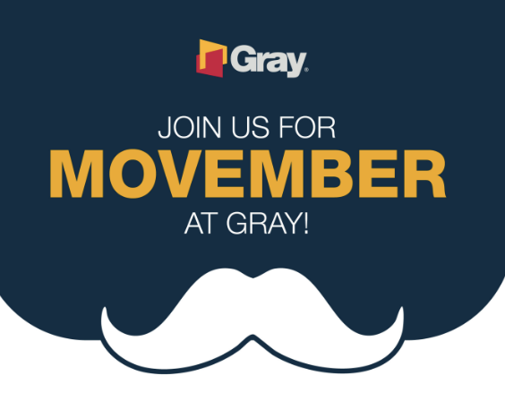 Contest Day: We'll be judging the official Mustache Contest on Thursday, November 21st, so get growing and get creative! Email your photos to socialmedia@gray.com.