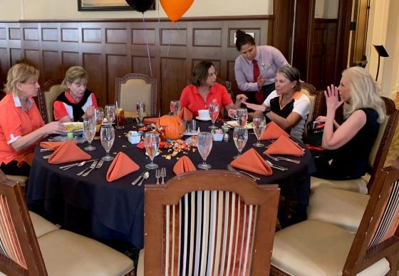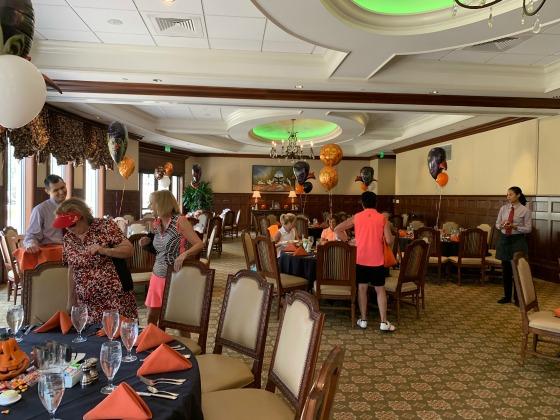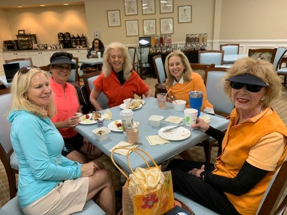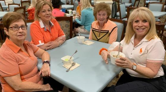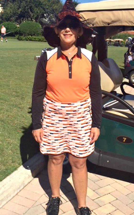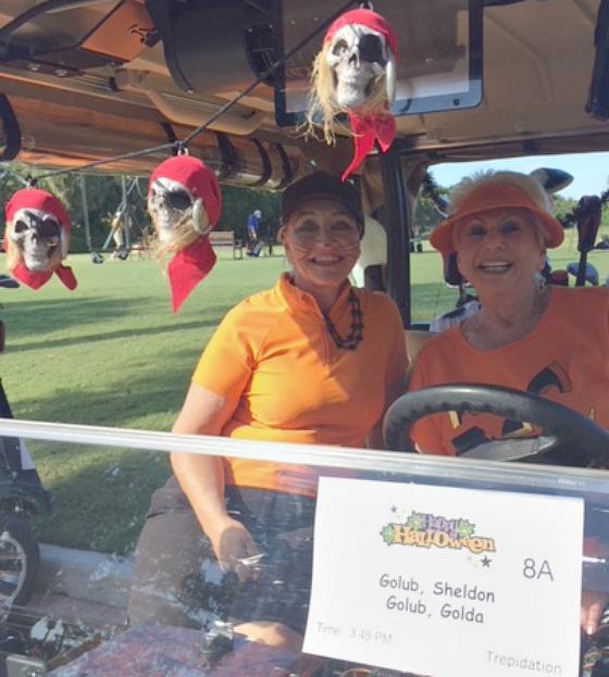 November 13th. The theme, as you would expect, was Halloween. The ladies were dressed in black & orange, no surprise there. The 18 hollers set out at 8:30 AM and at 10:00 AM the 9 hollers followed. It was a great day of golf and the weather was perfect. It also was wonderful seeing and playing with our teammates returning from up North. A light breakfast was also made available as is Addison's custom. When both groups were done, everyone met upstairs for some lunch and awards.