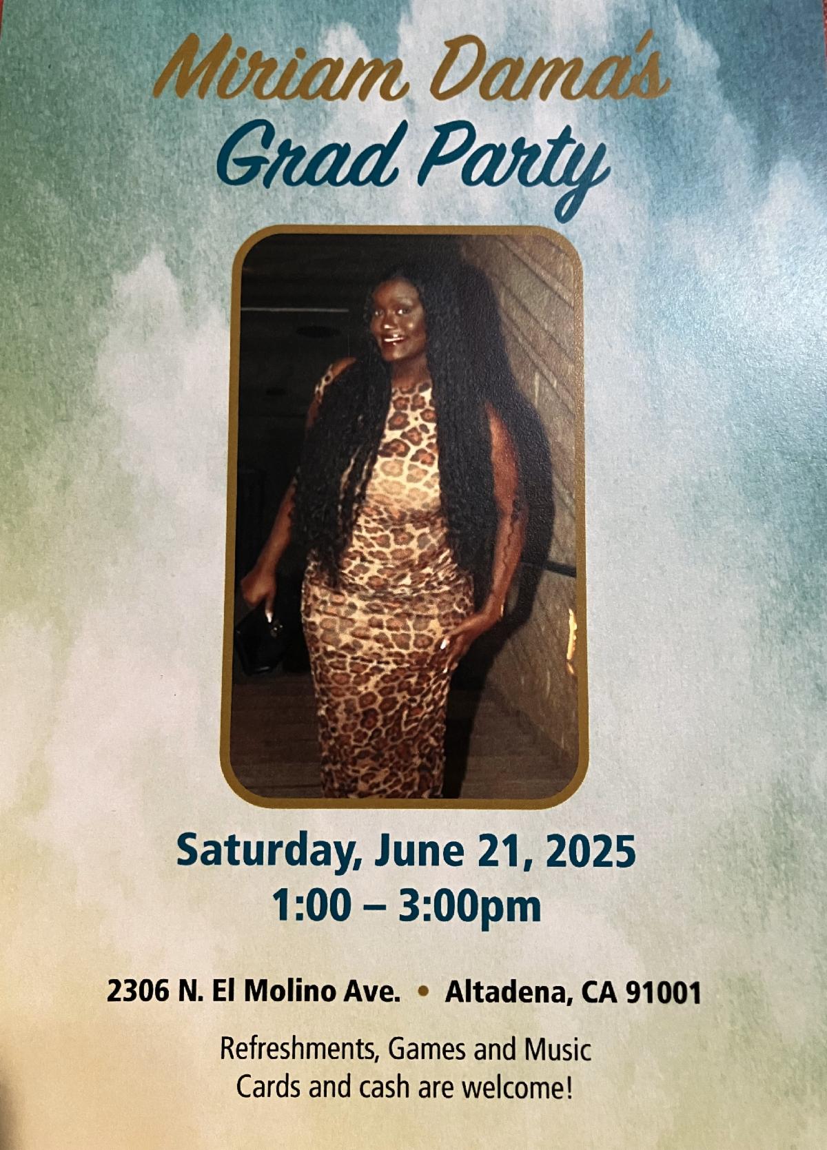 You are invited to join in Miriam Dama's graduation celebration.